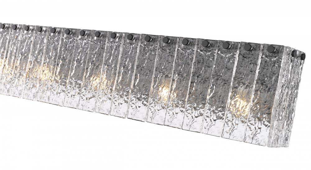 A bold finish of matte black over durable steel is the perfect choice for this modern five-light vanity bath light. A sophisticated centerpiece, it boasts flat bolt head details that secure vertical panels of clear textured glass, evoking melting ice to create impeccable texture and dimensionality.