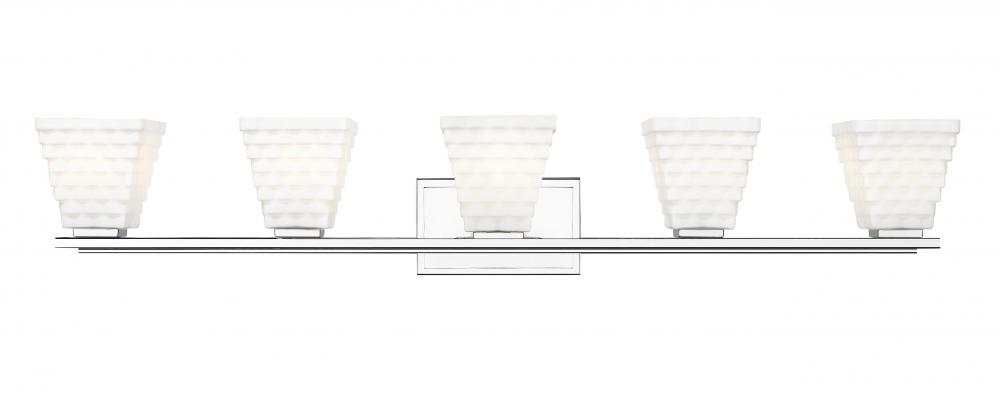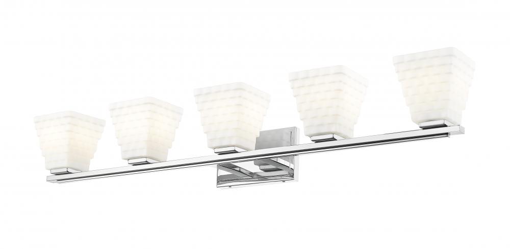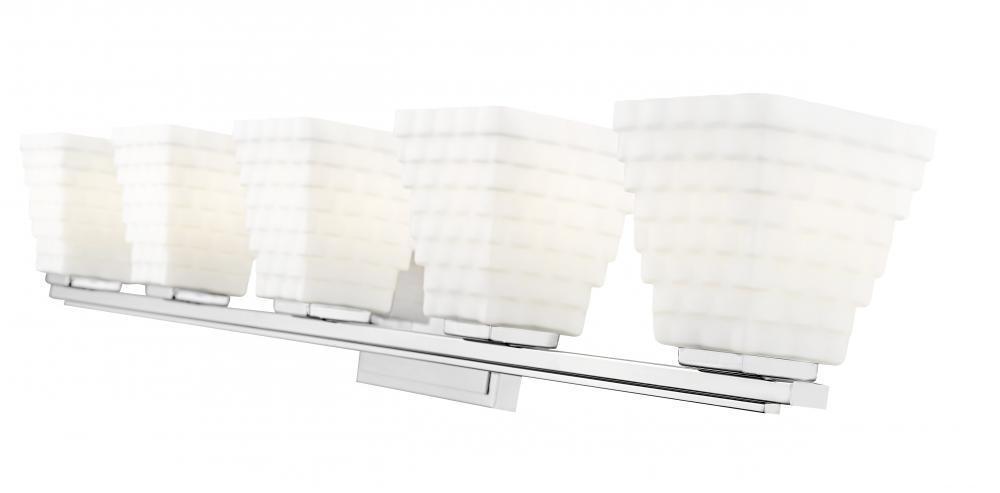With its geometric presentation of stacked opal glass rectangles, the Annalise collection provides a powerful style statement that easily complements transitional, contemporary, and modern bath settings. The classic backplate anchors the look with a choice