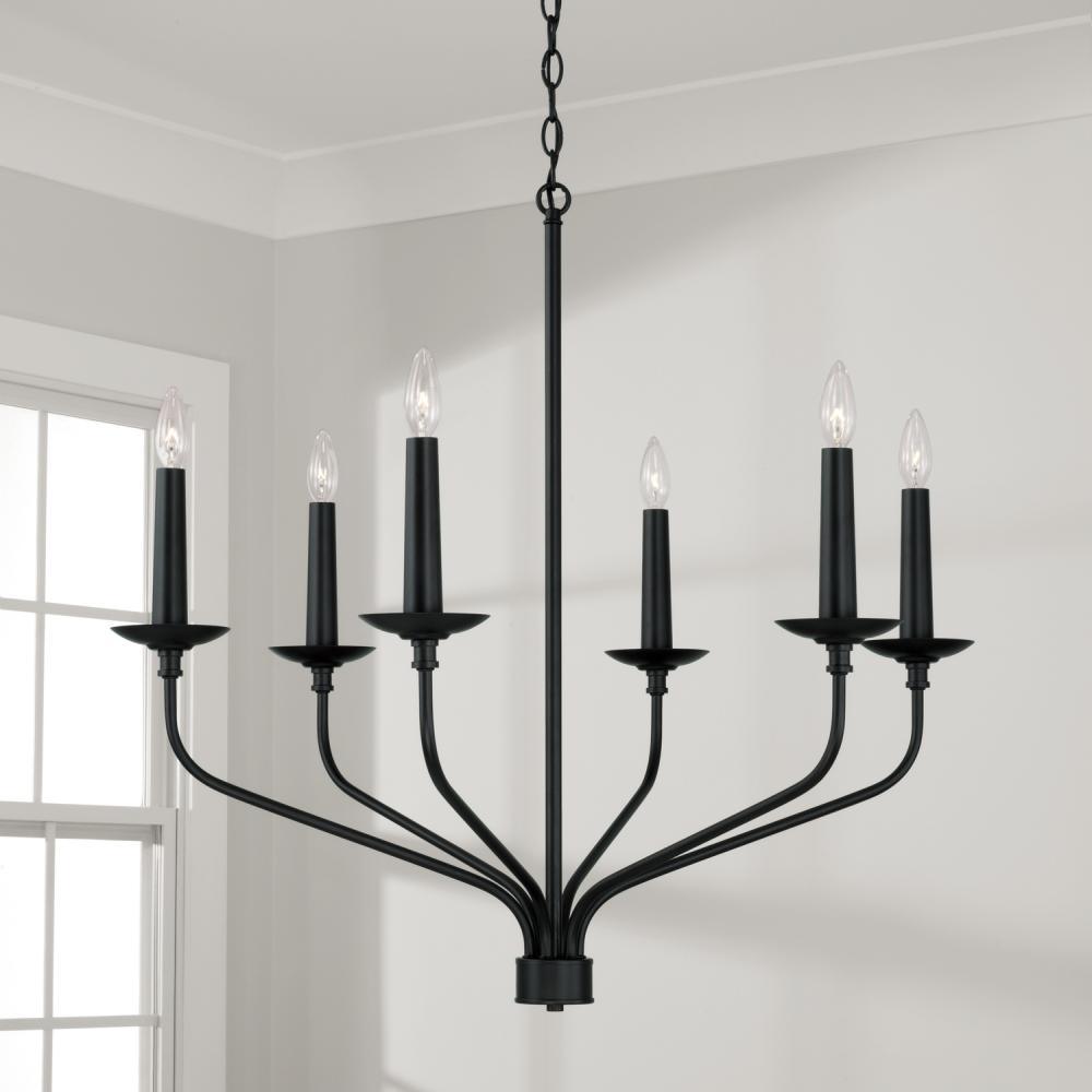 Pairing the Matte Black finish with designer details, the Wilder Medium Chandelier brings classic elegance with an (optional) element of nature. Available in Faux Wood and Matte Black, the interchangeable candle sleeves create a custom-made feel for high design that suits any style.