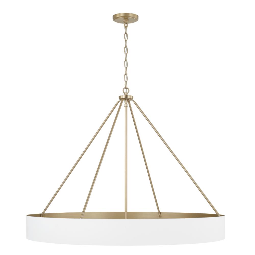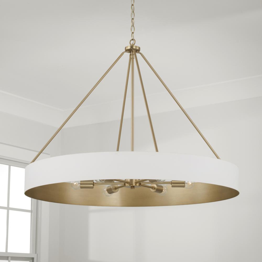Contemporary style with classic appeal. The Weller 6-Light Chandelier combines an elegant, circular silhouette with angled lines for a sleek aesthetic. The Matte White finish with painted Matte Brass interior brings mixed metal intrigue and a hint of shine.