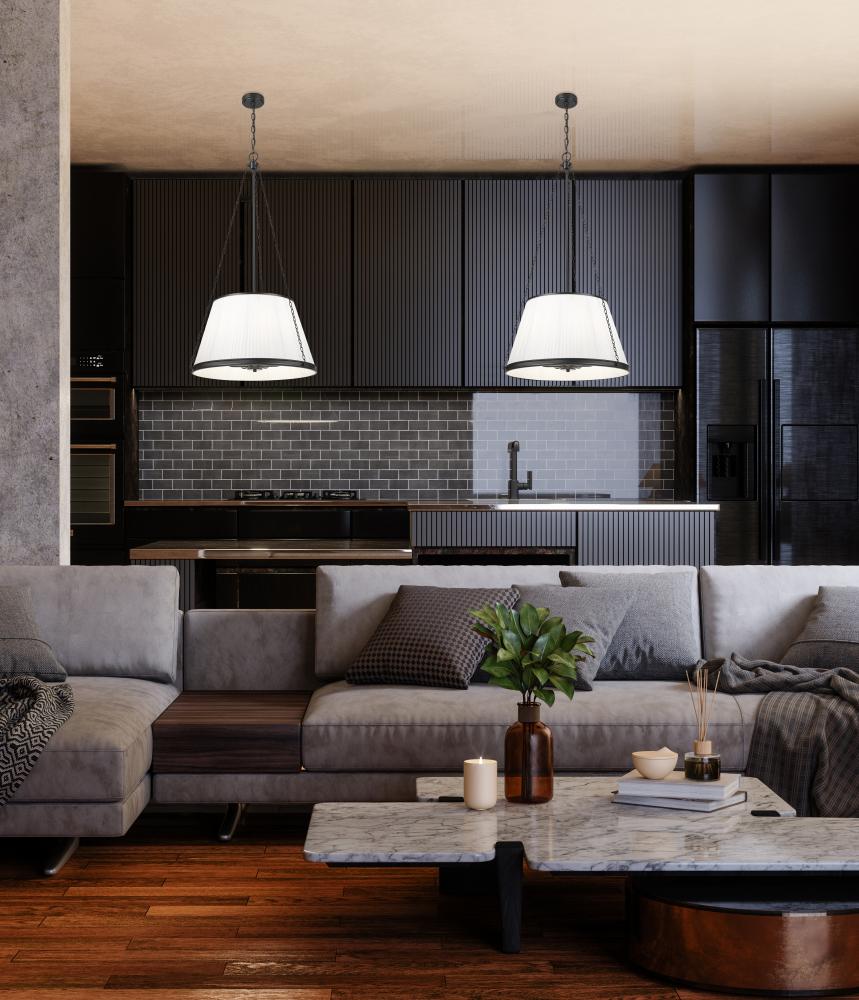 Classically simple, but with attention to detail, the Madeline pendants are offered in two sizes and can be height adjustable. Pleated linen shades and delicate chains make this collection a stand-out. Available in Matte Black, Brushed Nickel and Modern G