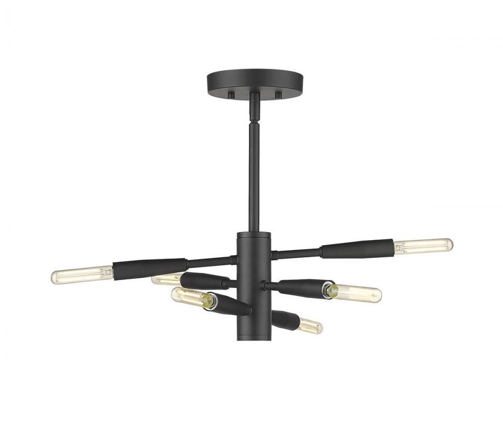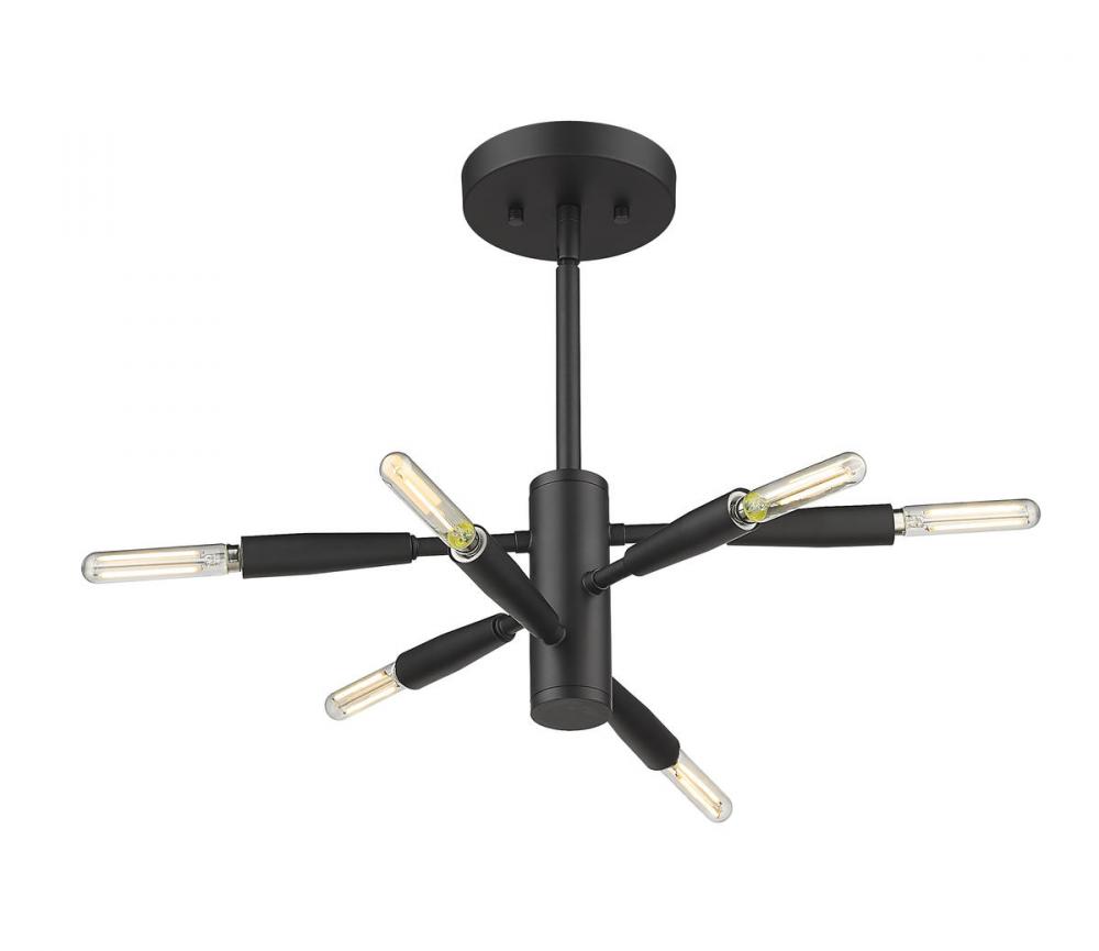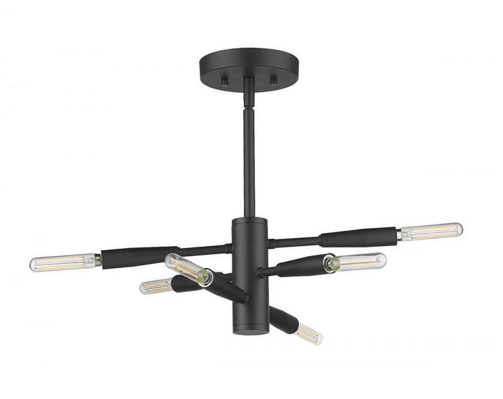 Step into a futuristic vibe as you choose illumination for your modern living spaces. This six-light semi-flushmount ceiling light from the Ascension collection delivers a sleek modular look with baton-style arms that rotate to a customized position. Made of bold matte black finish steel, this inspiring fixture may be further personalized with the custom optional bulbs of your choosing.