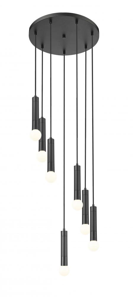 Create a refined focal point over your entry or dining room with this modern seven-light chandelier. A round canopy and elongated tubes receive a deep matte black finish that ensures bold contrast in virtually any setting. Petite lights offer bright, lovely illumination while braided cording is a sophisticated finishing touch.
