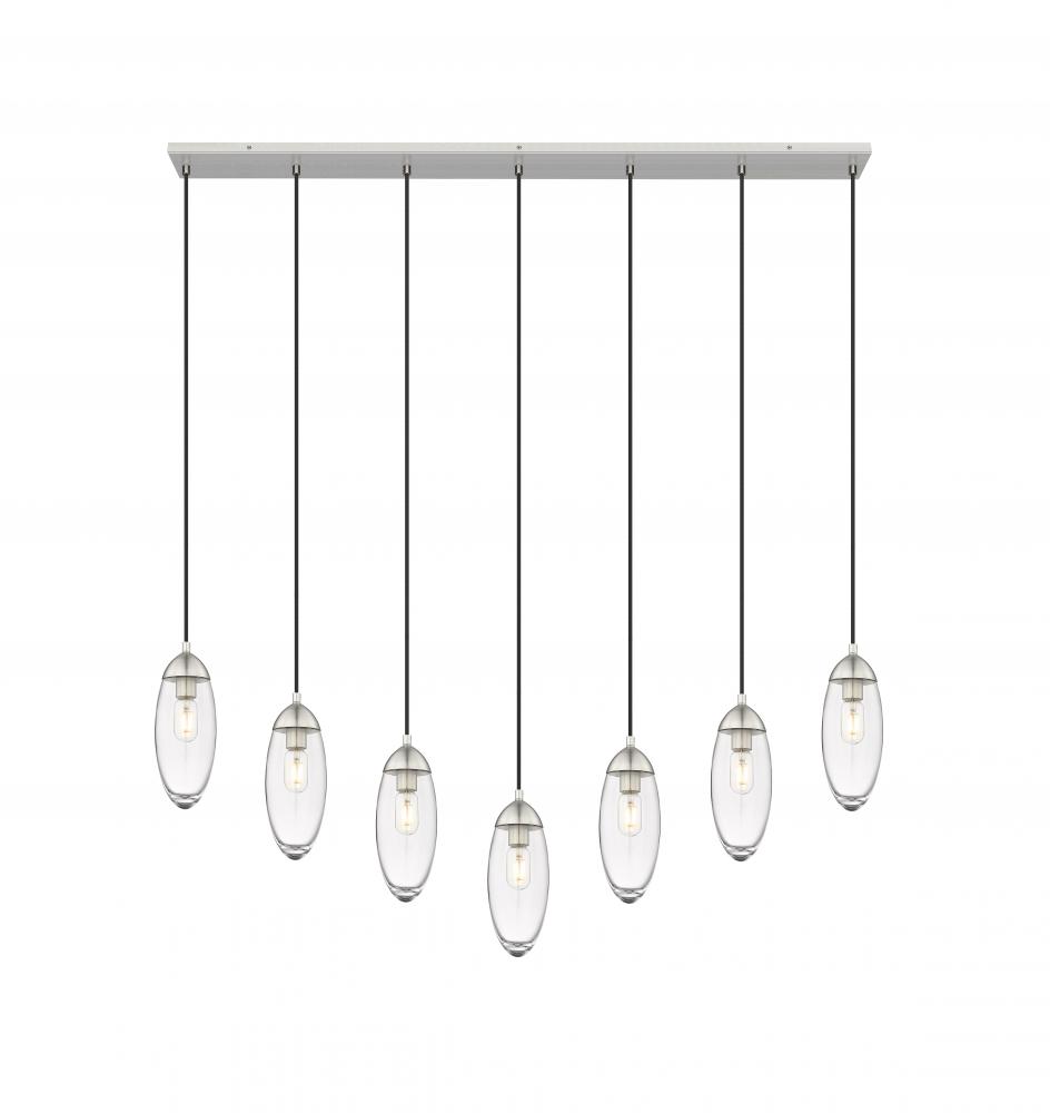 Customize a modern interior design scheme lighting suited to sleek elegance. A careful arrangement of delicate glass teardrop shades forms a minimalist silhouette with maximal impact as this seven-light chandelier becomes an expression of sophistication in a contemporary setting. Placed over an island, dining ensemble, or living area, this fixture with a brushed nickel finish metal canopy offers a sought-after mix of organic and gallery-inspired flavor.