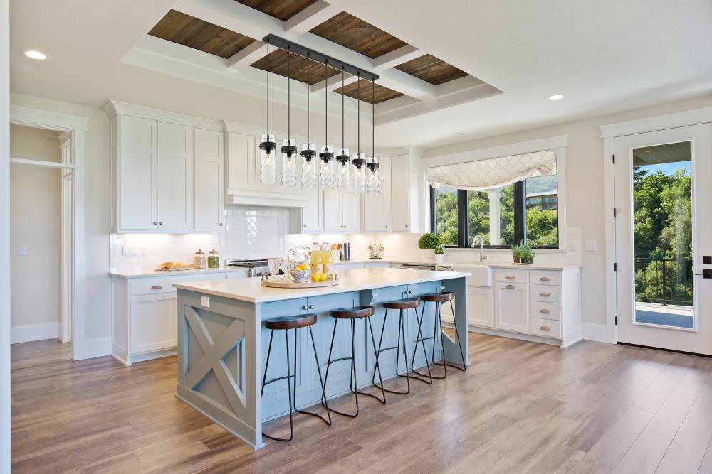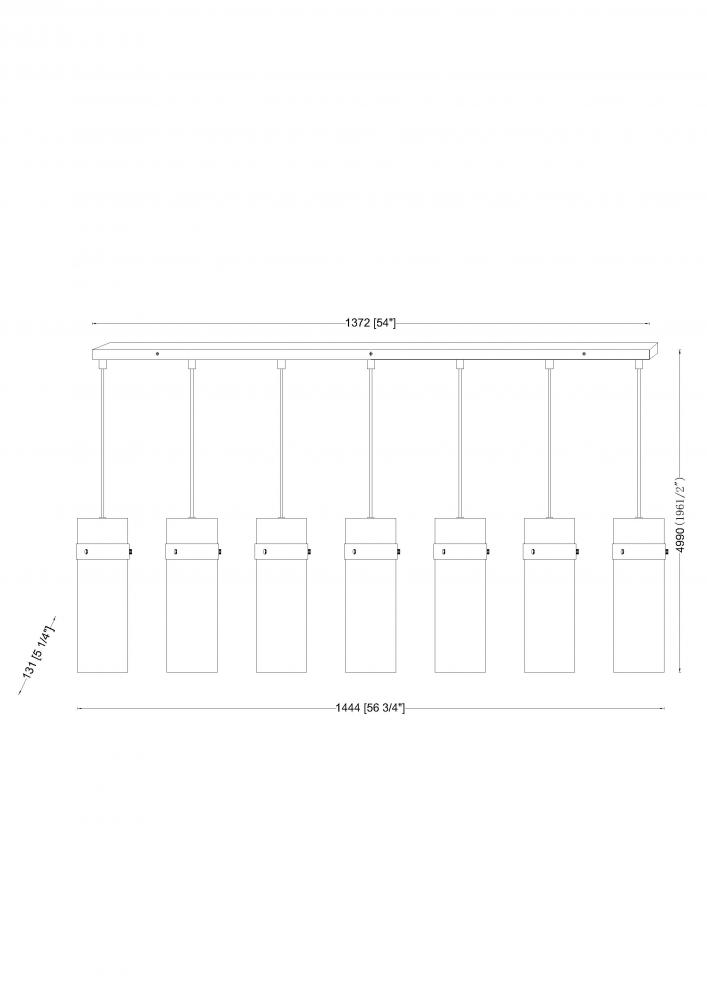 Superb opulence radiates from a modern seven-light linear chandelier. In matte black, it delivers impressive depth and contrast over a kitchen island or dining table, offering clear water glass shades and distinctive metal collars for a clean, precise look and feel. Braided cord completes the look to perfection.