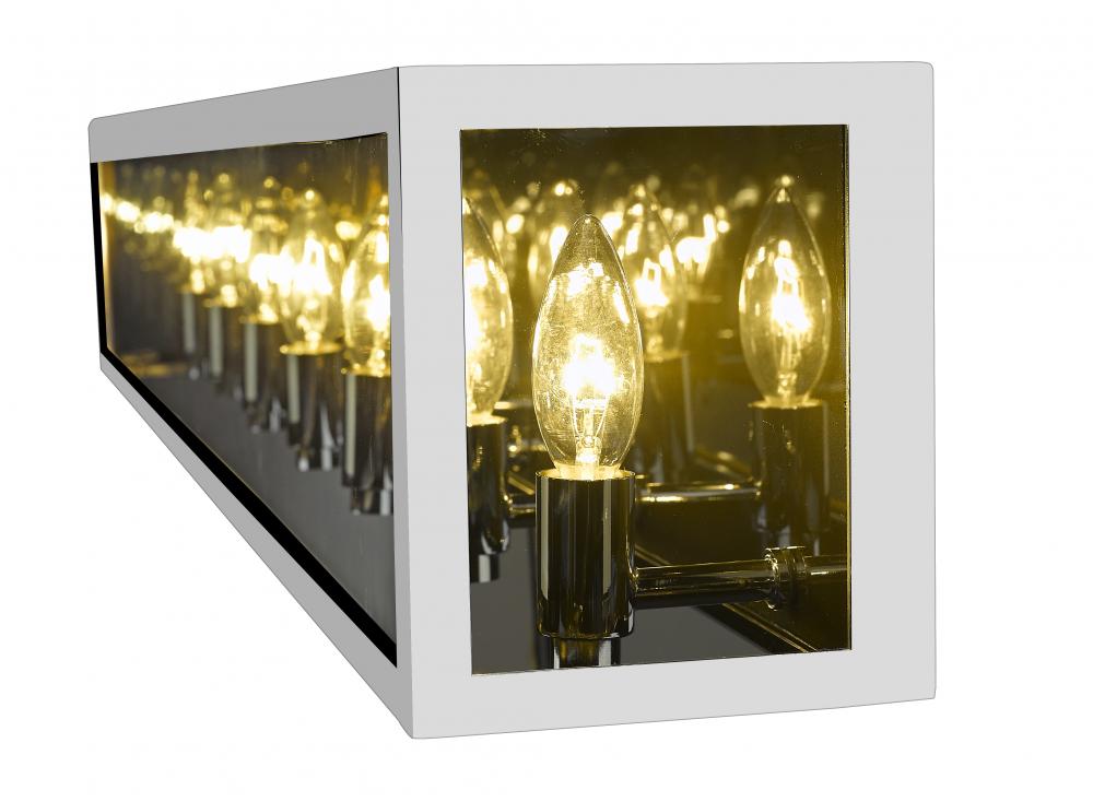 The infinity fixtures illuminate to reveal rows and rows of lights that appear endless. Inspired by the mirrors of the 70s, this collecti on will add the perfect drama to any living or dining room. Available in polished chrome or misty charcoal.