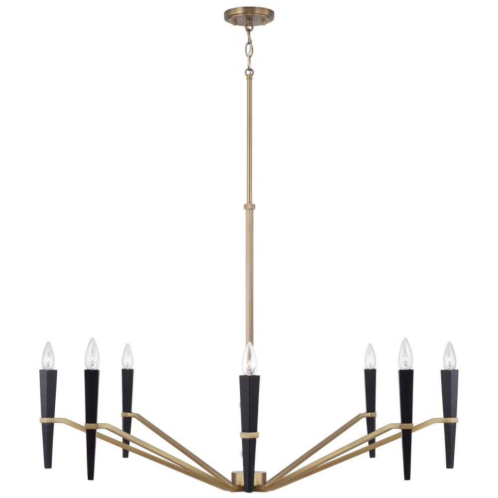 Bring striking style to any space with the Enzo Large Chandelier. The tapered, sculpted candlesleeves appear to pierce the arms for a unique angular design, while the sleek Aged Brass and Black combination finish creates a refined, modern aesthetic.