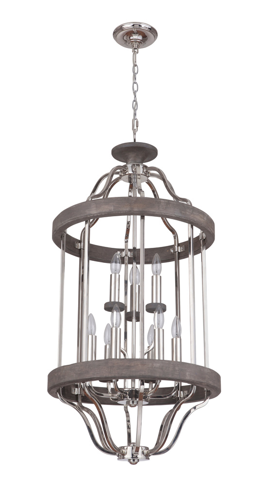 Ashwood 9 Light Foyer in Polished Nickel/Grey Wood