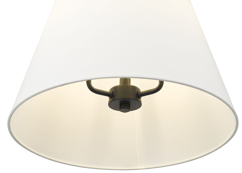 Refined and graceful, the Adorra Family puts a modern twist on classic Regency styling and creates a thoughtful design statement throughout any home. Crisp white linen shades complement the beautifully detailed fixtures in polished nickel, vintage brass, or matte black. Available as a 3-light semi-flush mount, 3-light candelabra, or 1-light sconces, these fixtures enhance any interior design scheme with a polished touch.