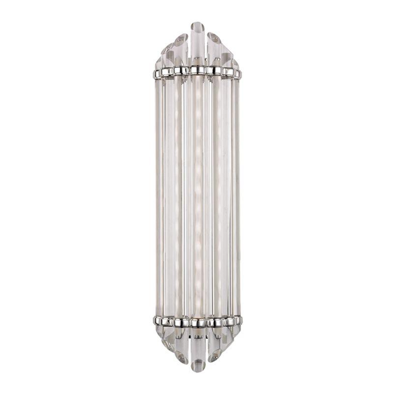 Fluted cast metalwork clasps Albion’s shimmering array of polished rods. The broad rods, beveled on each end, are arranged in tapering order before a frosted glass diffuser. Combining the bright light and energy efficiency of LED with the glamour of Art Deco style, Albion is a winning wall sconce or bath and vanity piece, sure to endure in both style and substance.