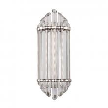 Fluted cast metalwork clasps Albion’s shimmering array of polished rods. The broad rods, beveled on each end, are arranged in tapering order before a frosted glass diffuser. Combining the bright light and energy efficiency of LED with the glamour of Art Deco style, Albion is a winning wall sconce or bath and vanity piece, sure to endure in both style and substance.
