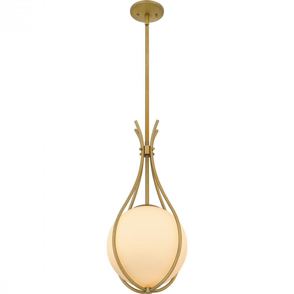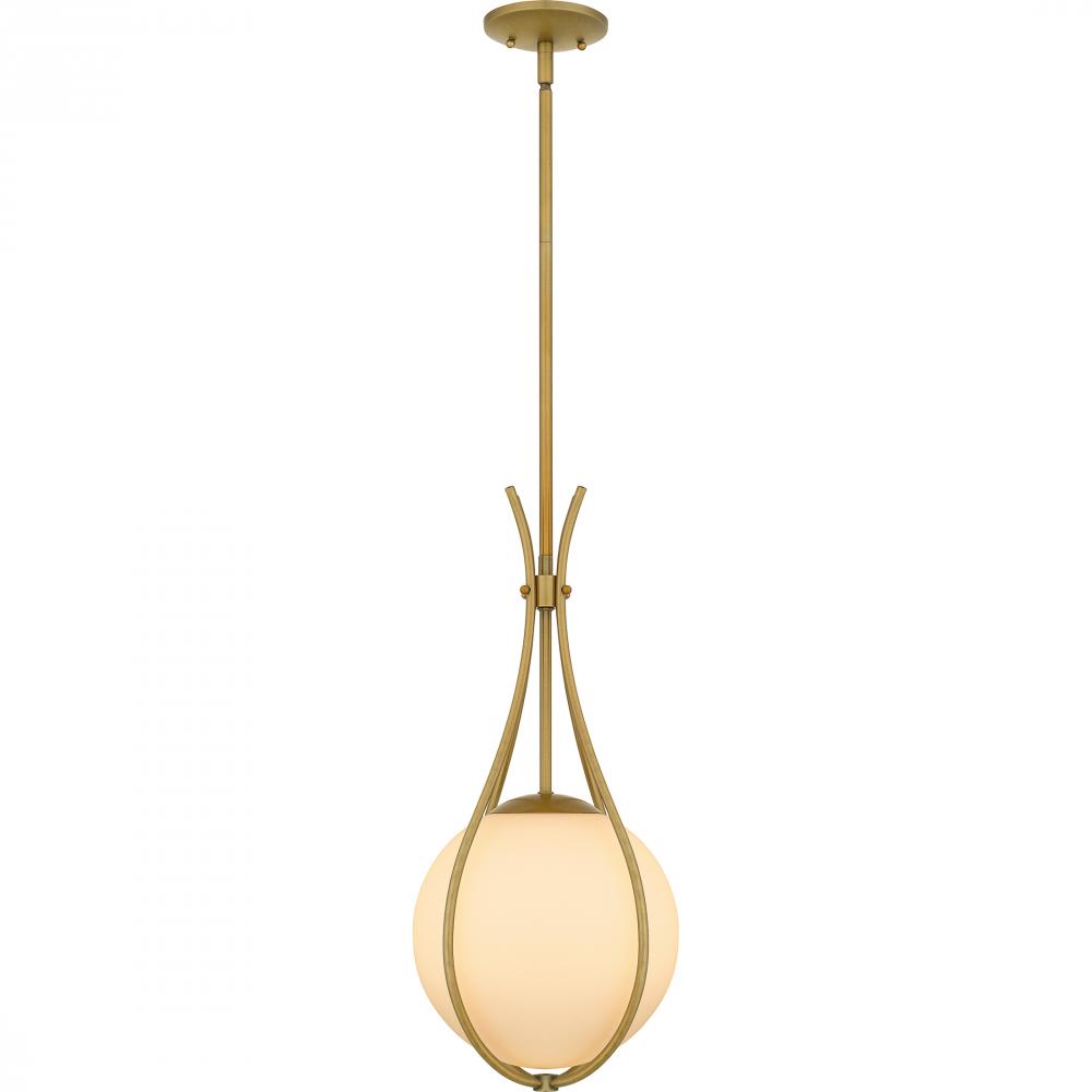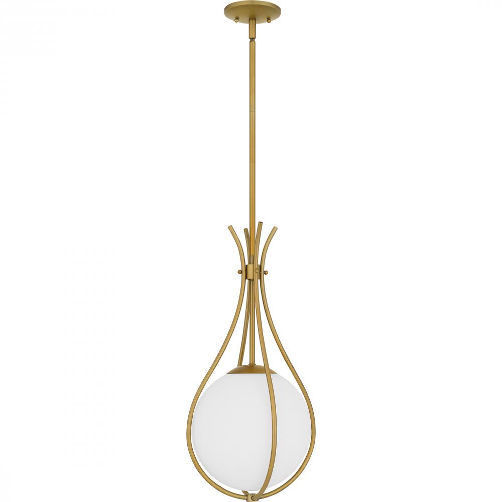 Modern and playful, the Aliyah mini pendant light pairs a spherical, opal etched glass shade with sleek metallic lines. The frosted glass globe casts a soft glow complemented by beautifully curving lines that join together at the top. Available in aged bra