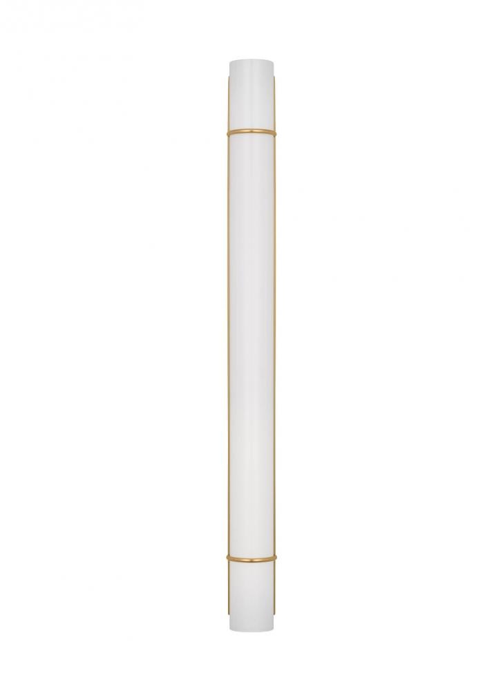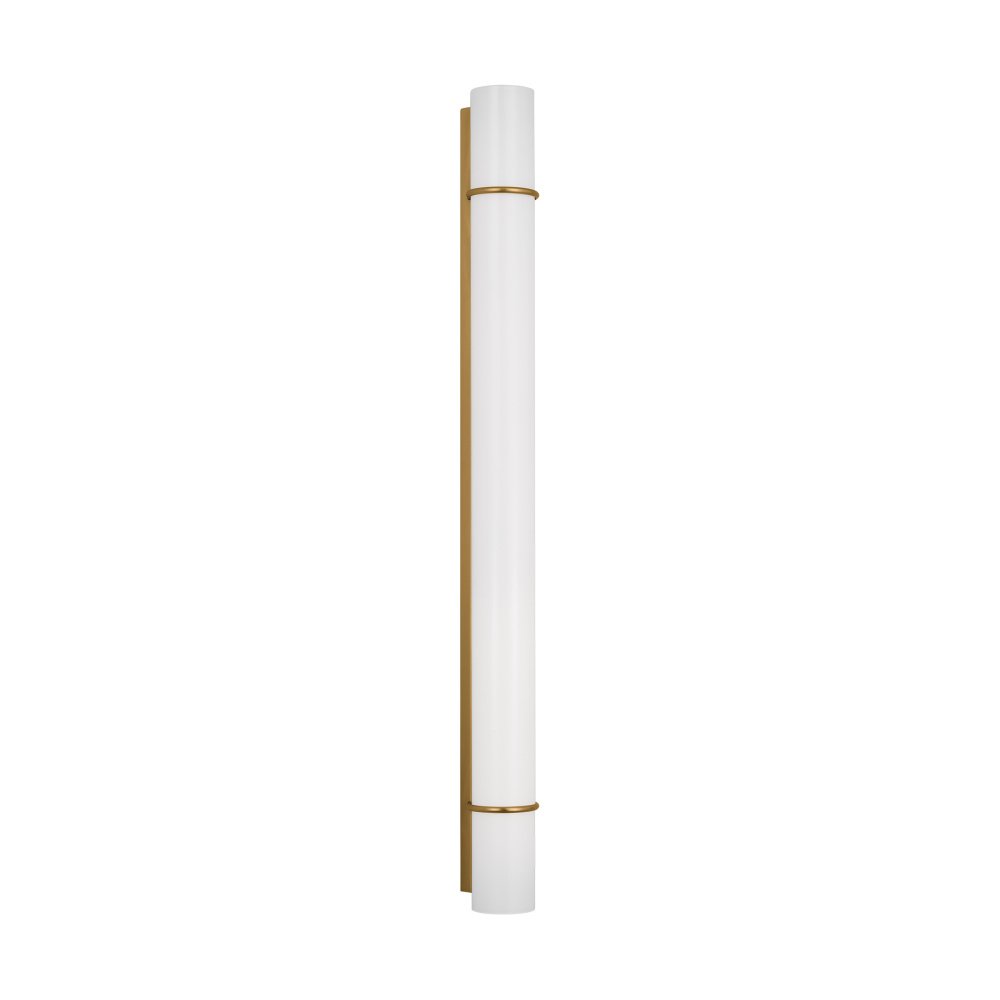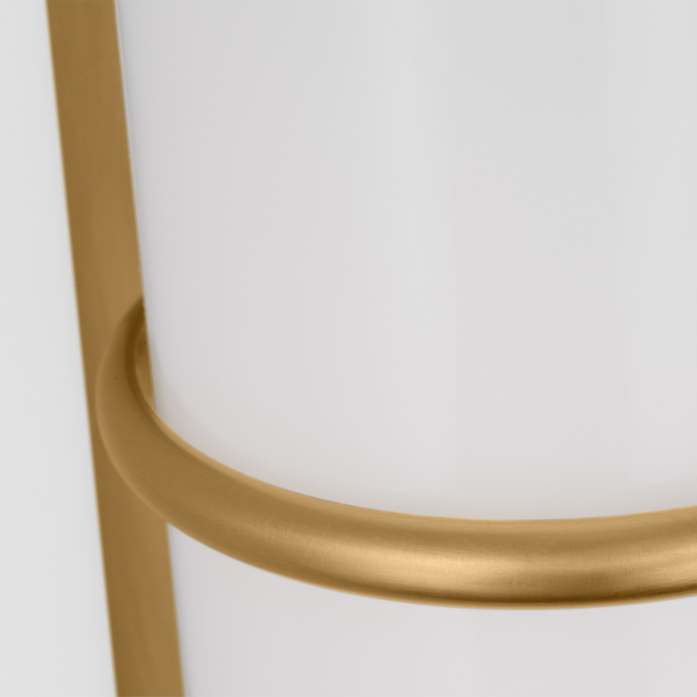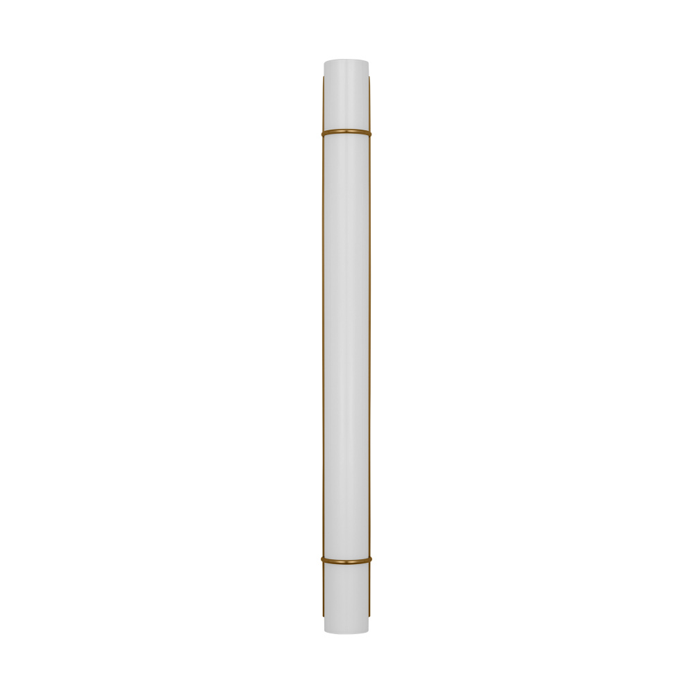 The Amelie Integrated LED vanity series by Chapman & Myers is a simplified cylindrical linear bath light with two metal rings inspired by a vintage cuff bracelet. Each sconce has a cylindrical glass shade accented by two metal rings on either end of the sconce and a metal back plate. Amelie is illuminated with custom-led panels to provide an even glow through the white glass shades. Available in three sizes and three finish options. Dimmable Integrated LED lamping with Damp location rating.