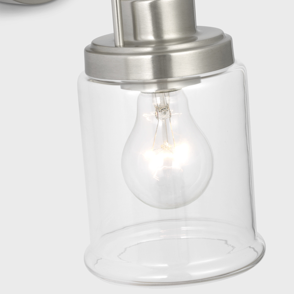 Crafted with Steel in a Brushed Nickel finish with clear glass shade