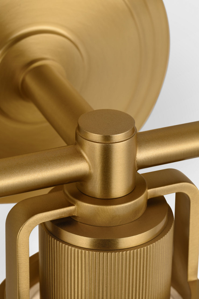 The Ashford 24" Vanity by Chapman & Myers is designed for larger bath environments, offering a generous scale and elevated detailing. Its square arch bracket and circular collar support dual white cylindrical glass shades, With open collars that allow light to highlight the vertically knurled socket covers—an intentional design element that echoes popular bath fittings. Ideal for primary bathrooms, double-sink vanities, or expansive layouts, the 24" fixture blends industrial precision With refined simplicity, making it a natural complement to both traditional and modern interiors.