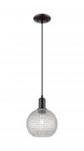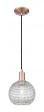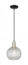 Athens - 1 Light - 8 inch - Antique Brass - Clear Basket Weave shade - Cord hung - Mini Pendant
