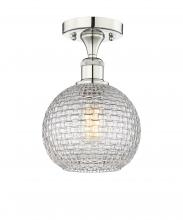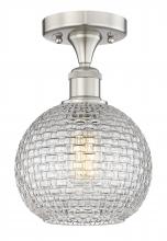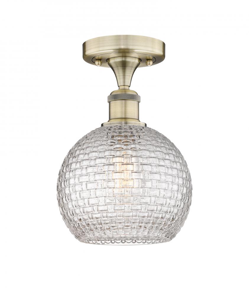Athens - 1 Light - 8 inch - Antique Brass - Clear Basket Weave Shade - Semi-Flush Mount