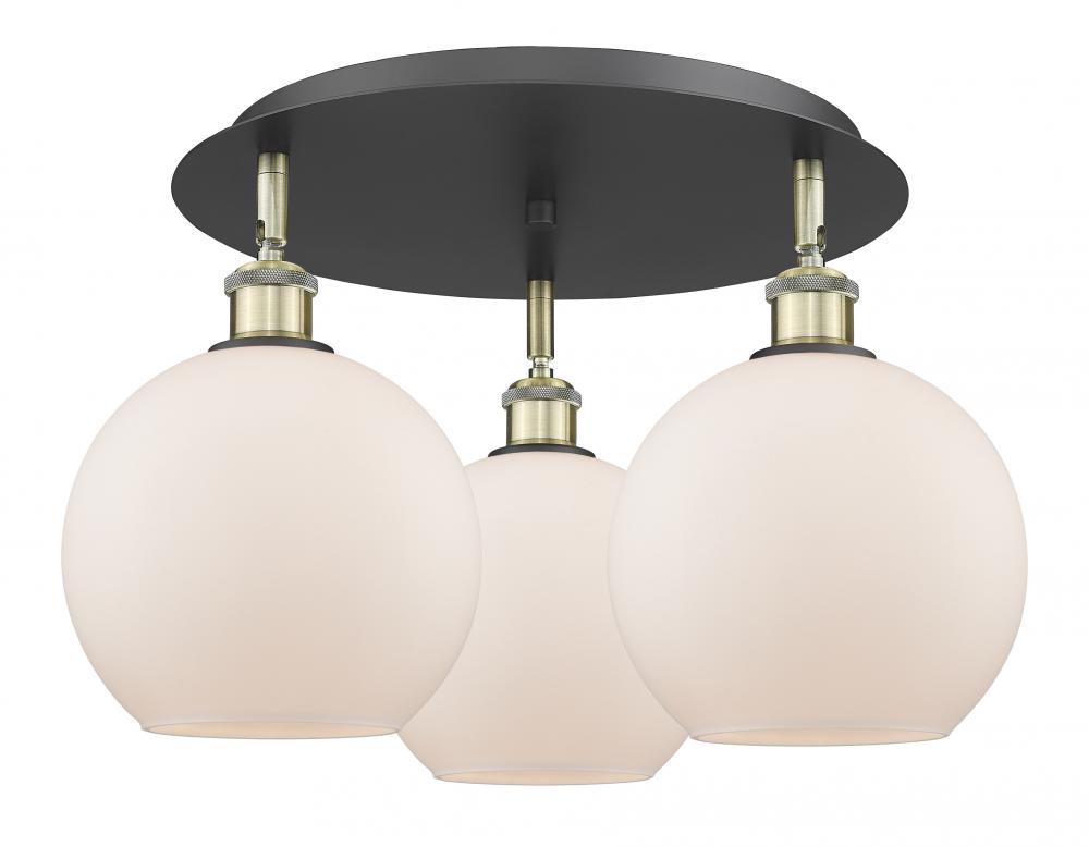Athens - 3 Light - 20 inch - Black Antique Brass - Matte White Shade - Semi-Flush Mount
