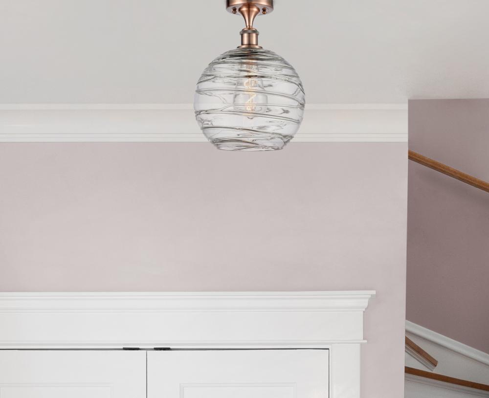 Athens Deco Swirl - 1 Light - 10 inch - Antique Copper - Clear Deco Swirl Shade - Semi-Flush Mount
