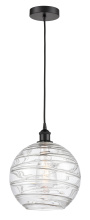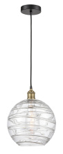 Athens Deco Swirl - 1 Light - 12 inch - Black Antique Brass - Clear Deco Swirl Shade - Cord hung - Mini Pendant