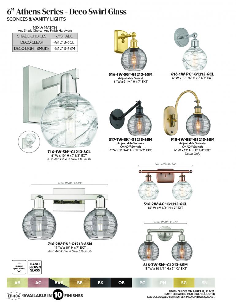 Athens Deco Swirl - 1 Light - 6 inch - Brushed Satin Nickel - Light Smoke Deco Swirl Shade - Sconce