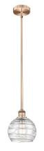 Athens Deco Swirl - 1 Light - 8 inch - Antique Brass - Clear Deco Swirl Shade - Stem hung - Mini Pendant