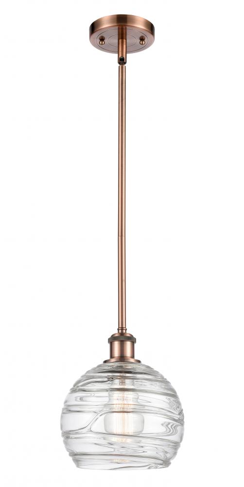 Athens Deco Swirl - 1 Light - 8 inch - Antique Copper - Clear Deco Swirl Shade - Mini Pendant