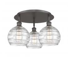 Athens Deco Swirl - 3 Light - 20 inch - Antique Brass - Clear Deco Swirl Shade - Flush Mount