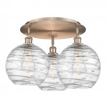 Athens Deco Swirl - 3 Light - 22 inch - Antique Brass - Clear Deco Swirl Shade - Flush Mount