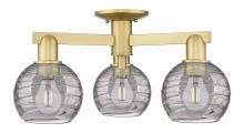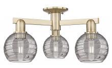 Athens Deco Swirl - 3 Light - 6 inch - Antique Brass - Clear Deco Swirl Shade - Semi-Flush Mount
