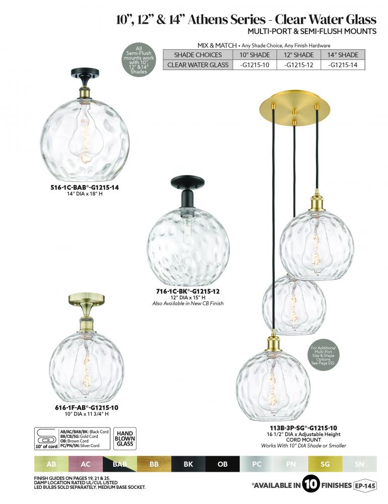 Athens Water Glass - 1 Light - 12 inch - Antique Brass - Clear Water Glass shade - Semi-Flush Mount