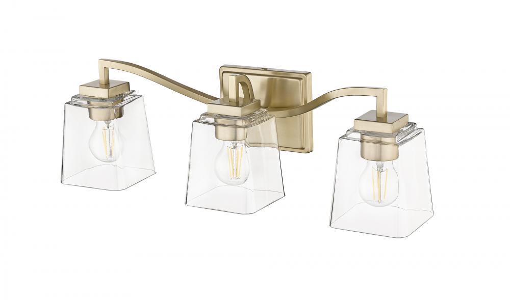 Sleek arched lines and square-shaped, clear glass globes infuse the Avenna Collection of vanity lighting with a dynamic sense of motion and dramatic flair. Finished in modern gold or polished nickel and available in 2-light or 3-light options, these fixtures are designed to transform any space with a bold and sumptuous design statement.