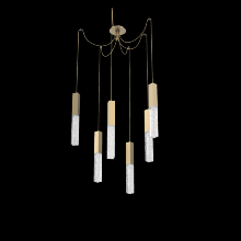 Axis Round 6pc Swag Multi - Pendant - Metallic Beige Silver - Geo Inner - Clear Outer - Cloth Braided Cord - LED - 2700K