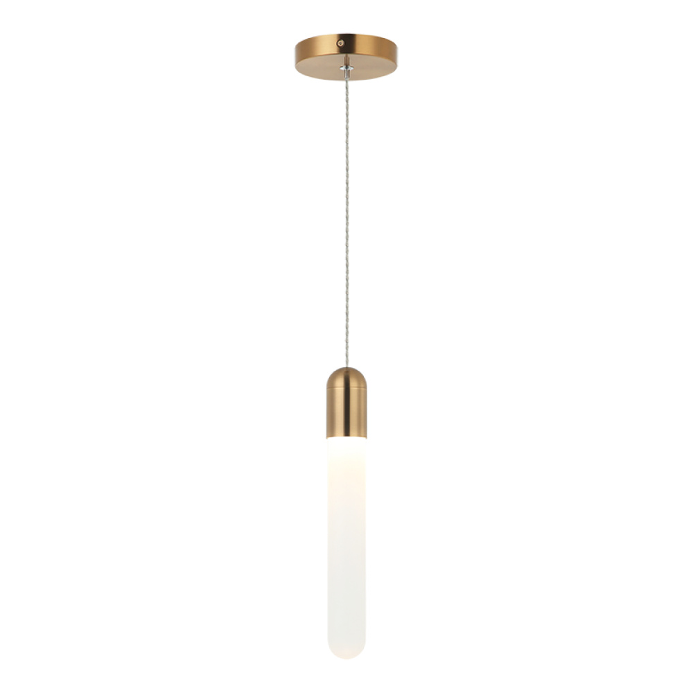Aydin is a Modern LED with cylindrical tube and frosted glass shade. Available in either Aged Gold Brass or Matte Black finish.