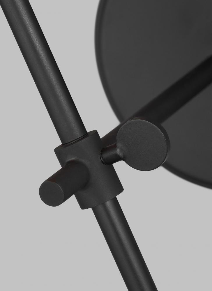 The Baker one light wall sconce in midnight black offers shadow-free lighting in your powder room, spa, or master bath room. A lantern-like design with curved arms connecting to a cube-shaped frame