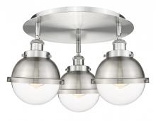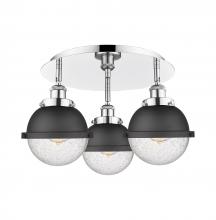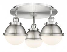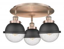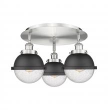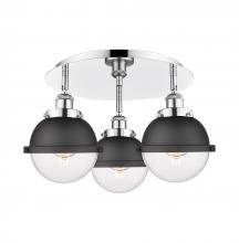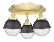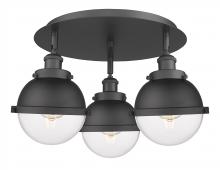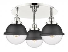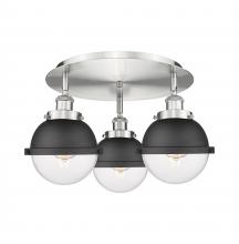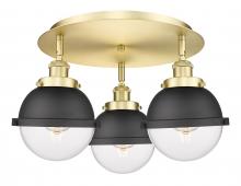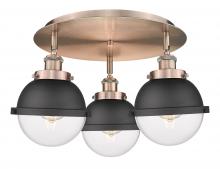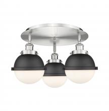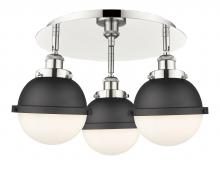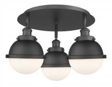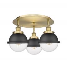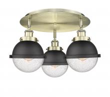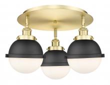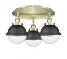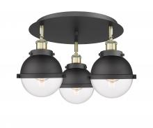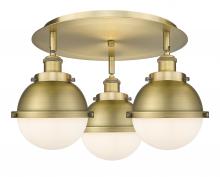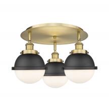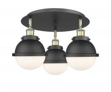 Ballston Urban - 3 Light - 19 inch - Antique Brass - Matte Black Hampden 6" with Matte White glass Shade - Flush Mount
