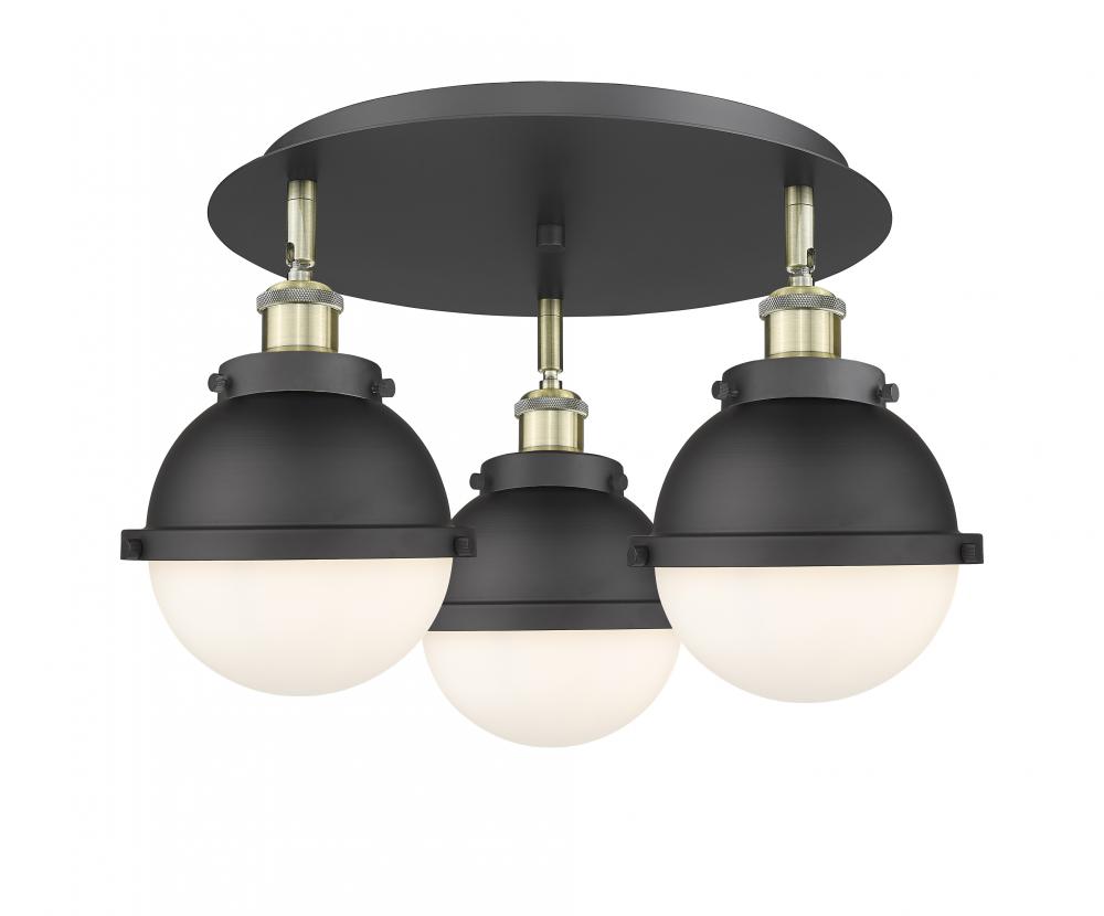 Ballston Urban - 3 Light - 19 inch - Black Antique Brass - Matte Black Hampden 6" with Matte White glass Shade - Flush Mount