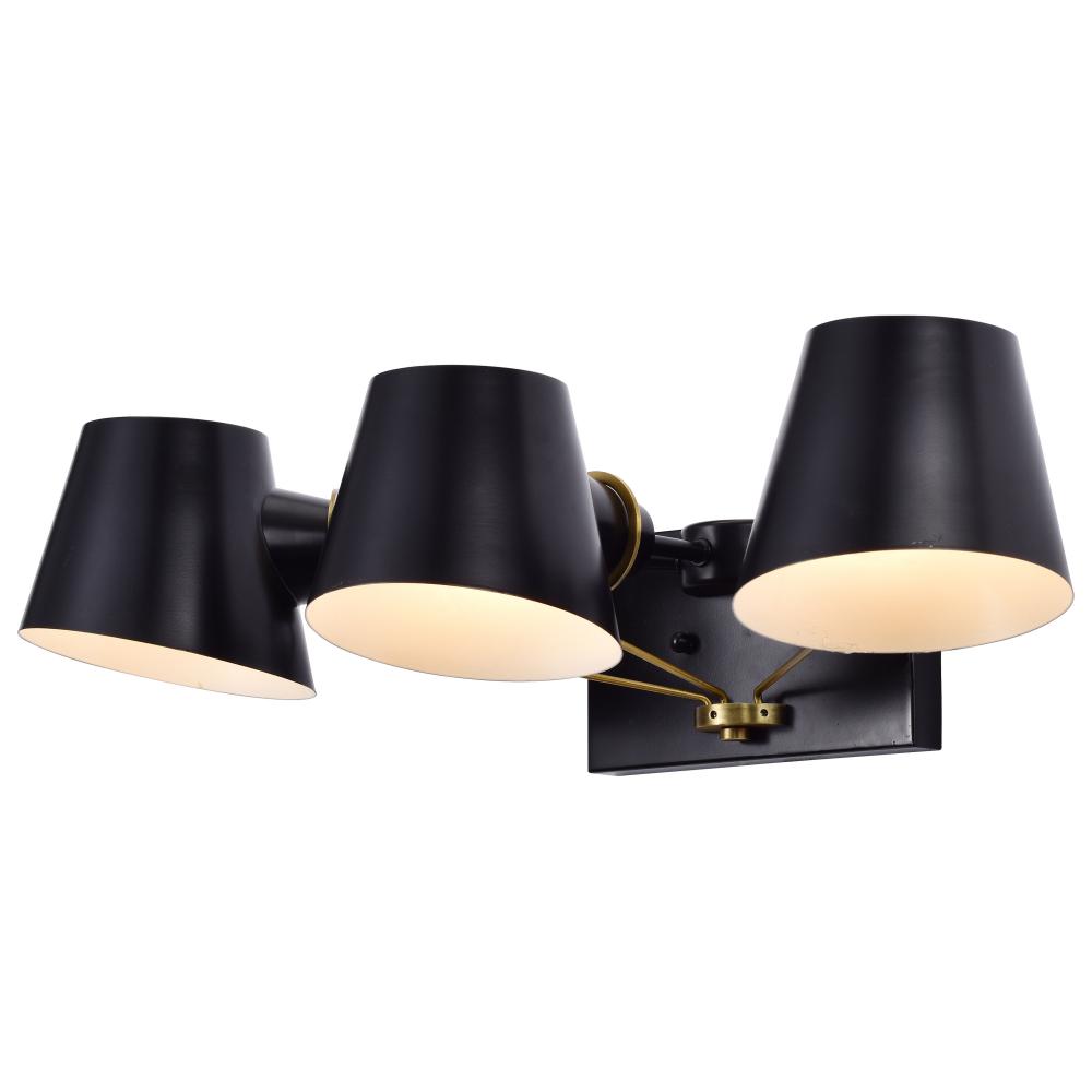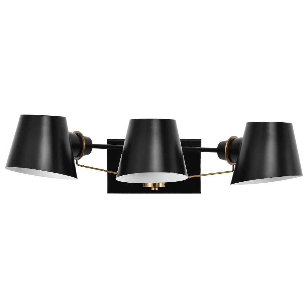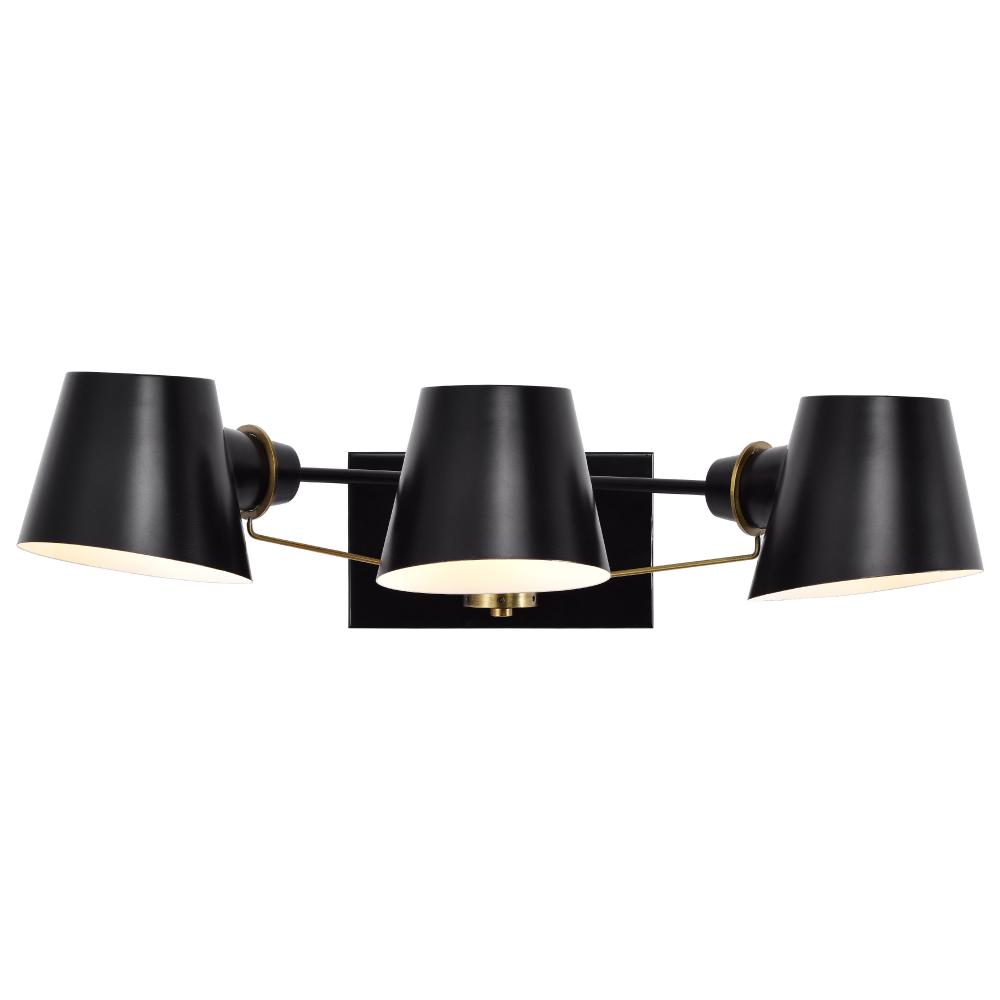 Baxter; 3 Light Vanity; Black with Burnished Brass