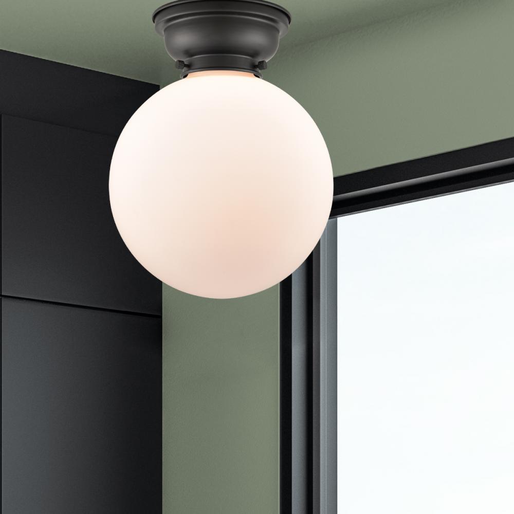 Beacon - 1 Light - 10 inch - Matte Black - Matte White Shade - Flush Mount