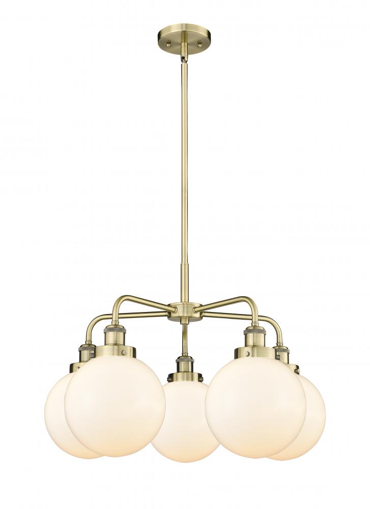 Beacon - 5 Light - 27 inch - Antique Brass - Matte White Shade - Chandelier