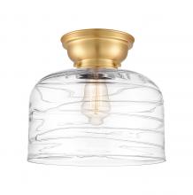 Bell - 1 Light - 12 inch - Antique Brass - Clear Deco Swirl Shade - Flush Mount