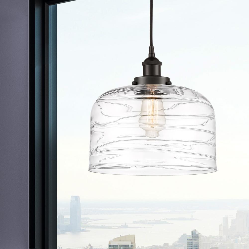 Bell - 1 Light - 12 inch - Oil Rubbed Bronze - Clear Deco Swirl Shade - Cord hung - Mini Pendant