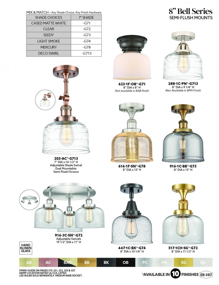 Bell - 1 Light - 8 inch - Antique Brass - Light Smoke Shade - Flush Mount