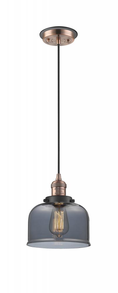 Bell - 1 Light - 8 inch - Antique Copper - Plated Smoke Shade - Cord hung - Mini Pendant