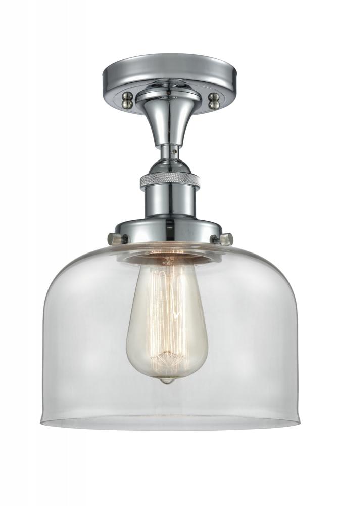 Bell - 1 Light - 8 inch - Polished Chrome - Clear Shade - Semi-Flush Mount