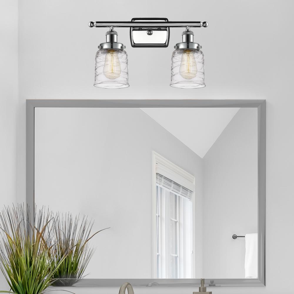 Bell - 2 Light - 16 inch - Polished Chrome - Clear Deco Swirl Shade - Bath Vanity Light