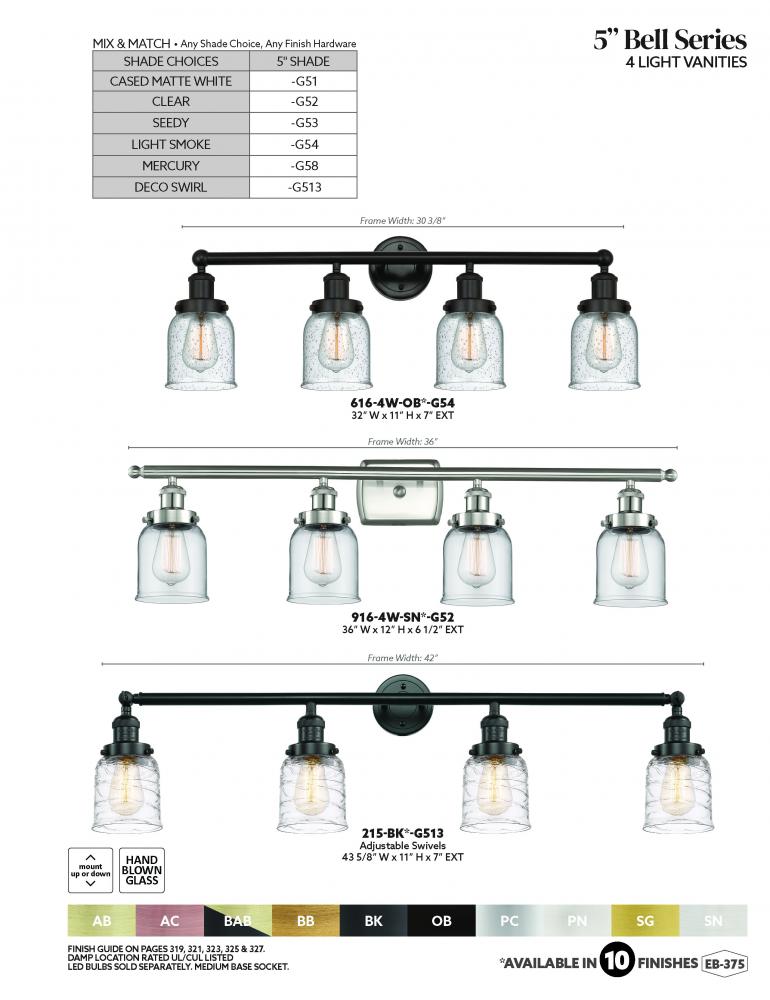 Bell - 4 Light - 42 inch - Antique Copper - Clear Deco Swirl Shade - Adjustable Bath Vanity Light