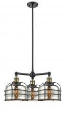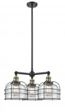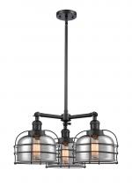 Bell Cage - 3 Light - 24 inch - Matte Black - Matte White Shade - Stem Hung - Chandelier