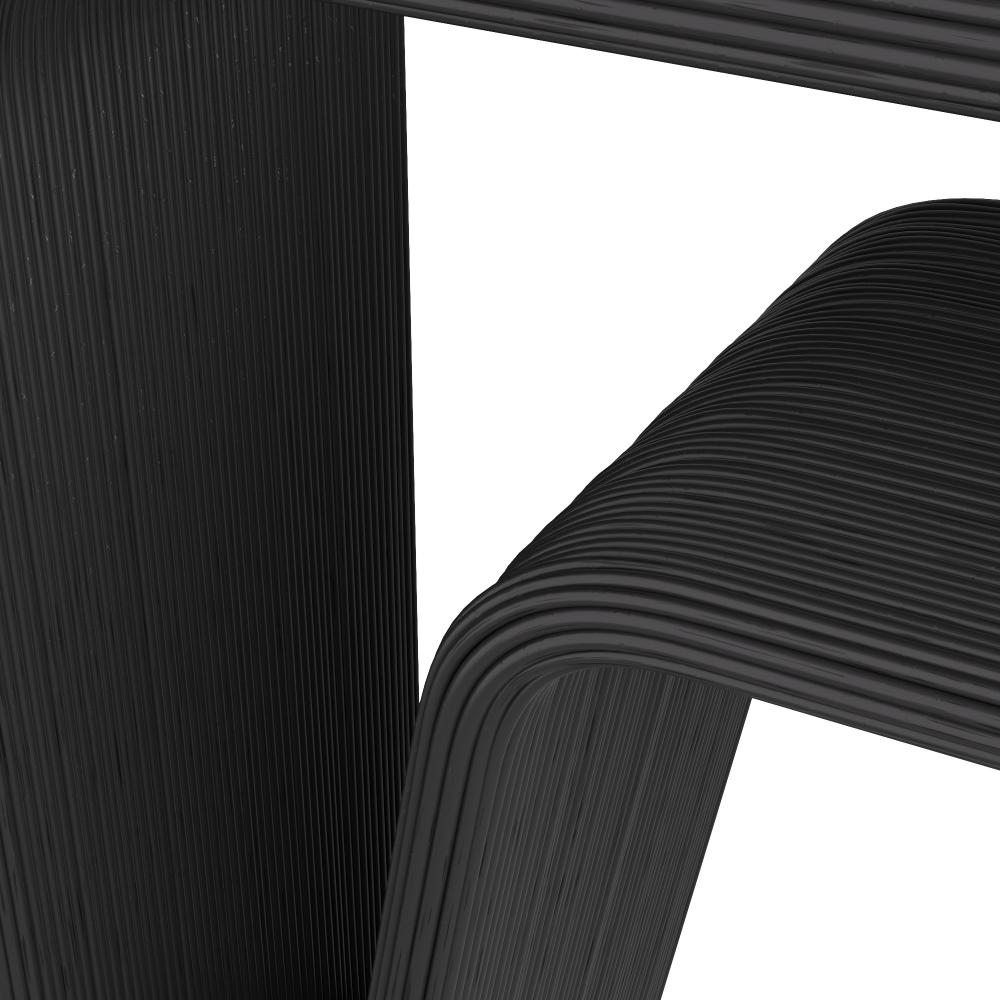 Add some mid-century-inspired style to any space with an airy console inspired by the era's classic hairpin desk legs. The Beltran's solid surface of ebony pencil rattan has an open back for extra impact, and a sculptural second shelf for more options.