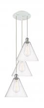 Berkshire - 3 Light - 19 inch - Antique Brass - Matte White Shade - Cord Hung - Multi Pendant